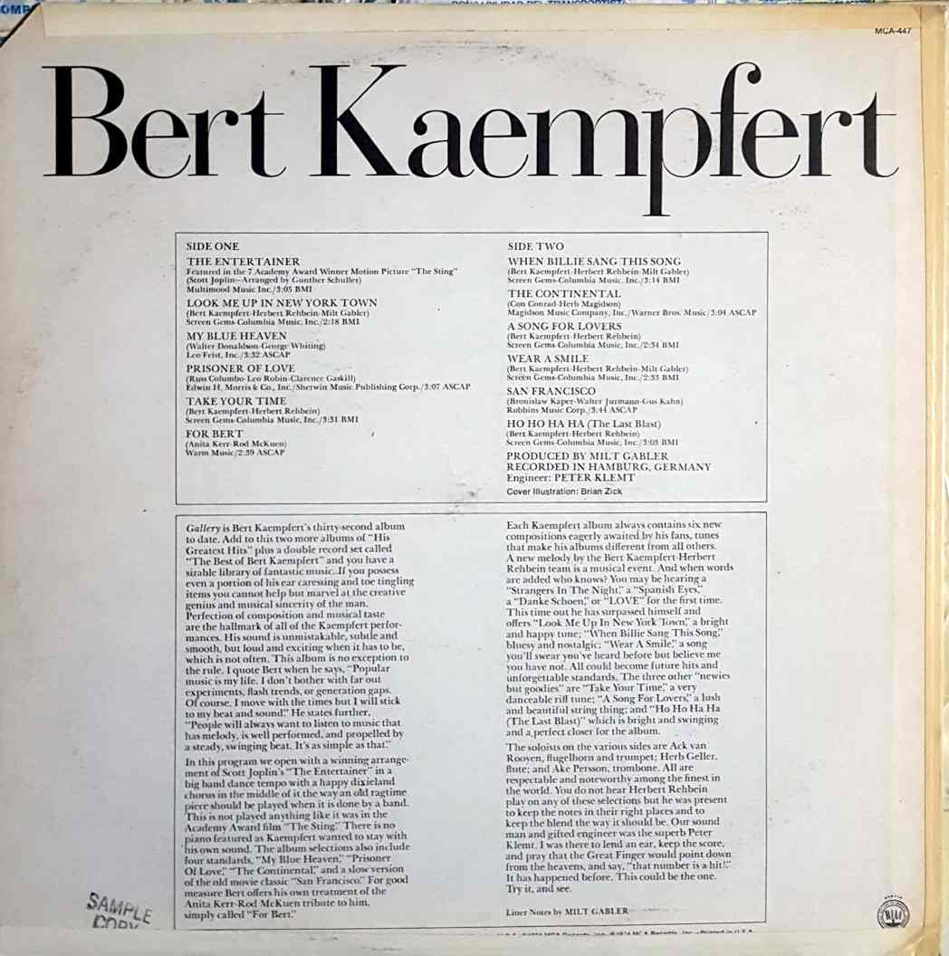 | B1 | When Billie Sang This Song | Written-By – Bert Kaempfert, Herbert Rehbein |