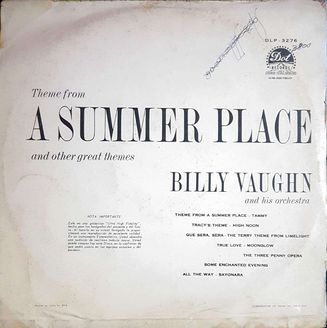 | A1 | Tema de «Un lugar de Verano» (Theme From A Summer Place) | Written-By – Max Steiner |